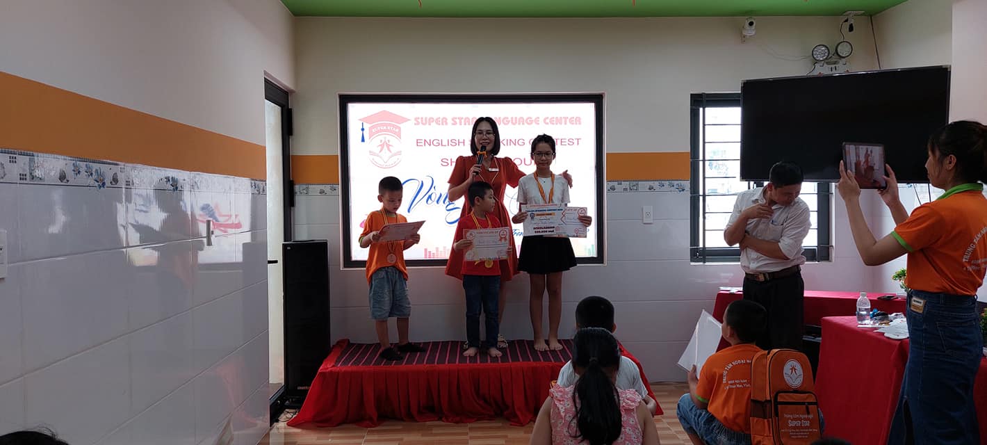 Trải qua hai vòng thi (vòng sơ loại – Online và vòng tỏa sáng – Trực tiếp). Hôm nay các con đã thể hiện rất tốt. Ban tổ chức xin chúc mừng các con, ai cũng đều chiến thắng với bản thân mình, với niềm tự tin thể hiện những chủ đề yêu thích của bản thân bằng tiếng Anh thật tuyệt vời.